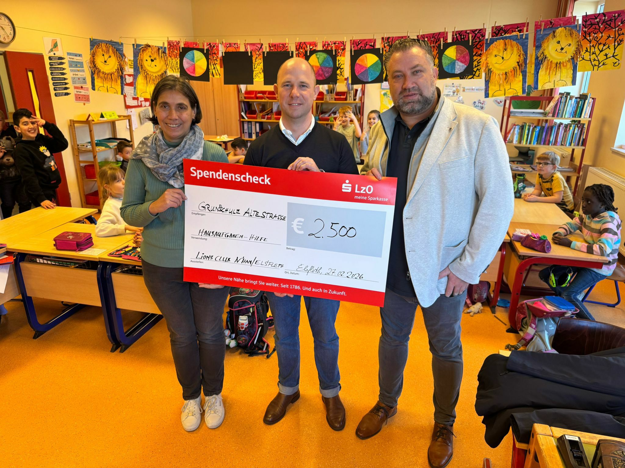 Spendenübergabe aus dem Kalender 2025 vlnr Holger Hullmann, Mark Carstens, Hergen Kalitzki, Martina Behrends, Holger Kuhlmann, Kerstin Malle, Ingo Finger.